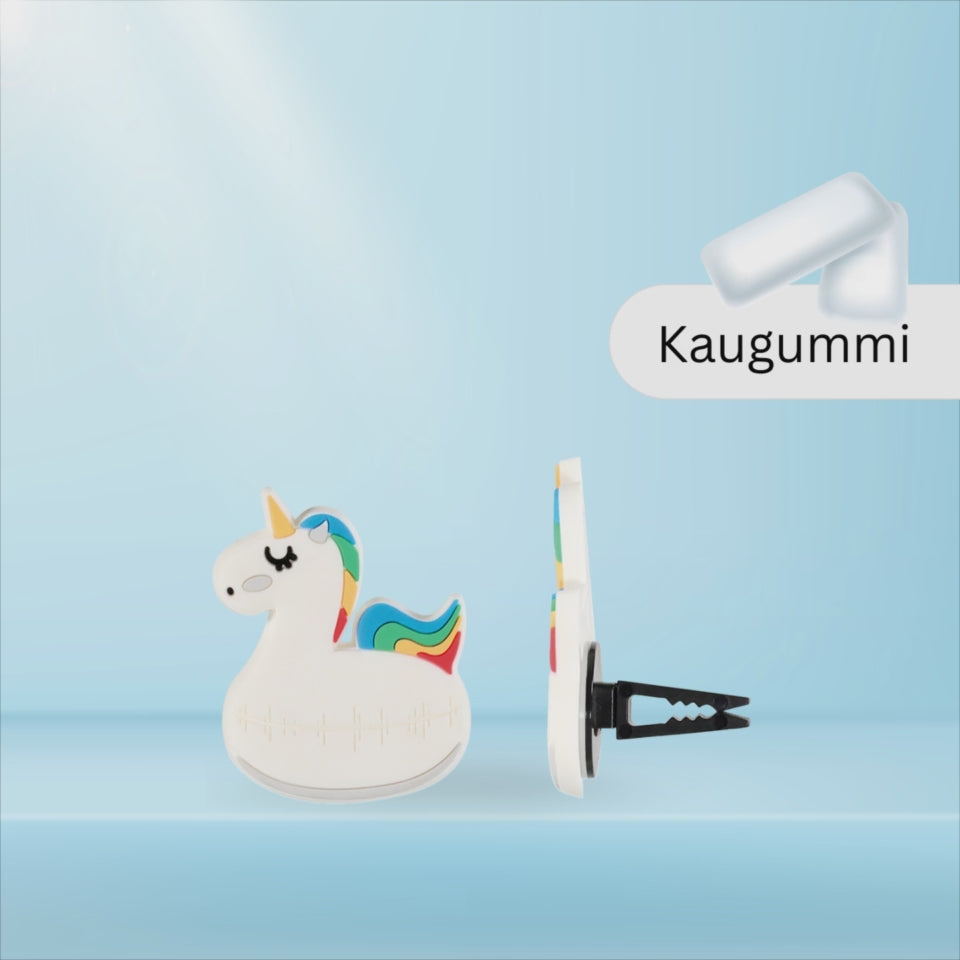 Einfach am Lüftungsschlitz angebracht, begleitet das Einhorn dich auf jeder Fahrt. Mit jedem Luftstoß wird der süße Duft von Bubblegum Blast in deinen Innenraum verteilt. Dieser duftende Begleiter verbindet Funktionalität und Design und ist ein absolutes Must-Have für Fans von fabelhaften Kreaturen und unwiderstehlichen Düften.