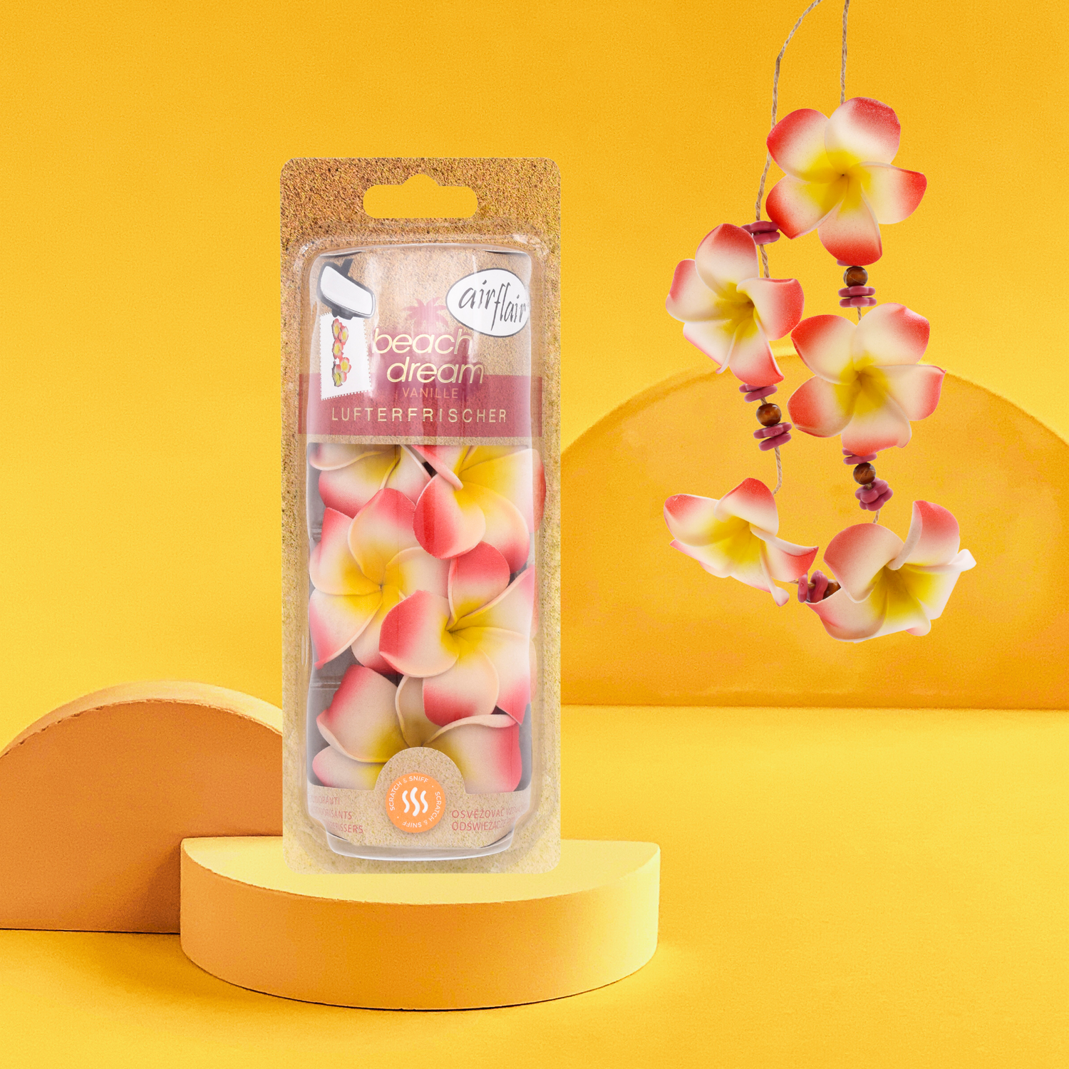 Der Beach Dream Blumenketten Auto-Lufterfrischer von airflair: Tauche ein in den Duft des Sommers!