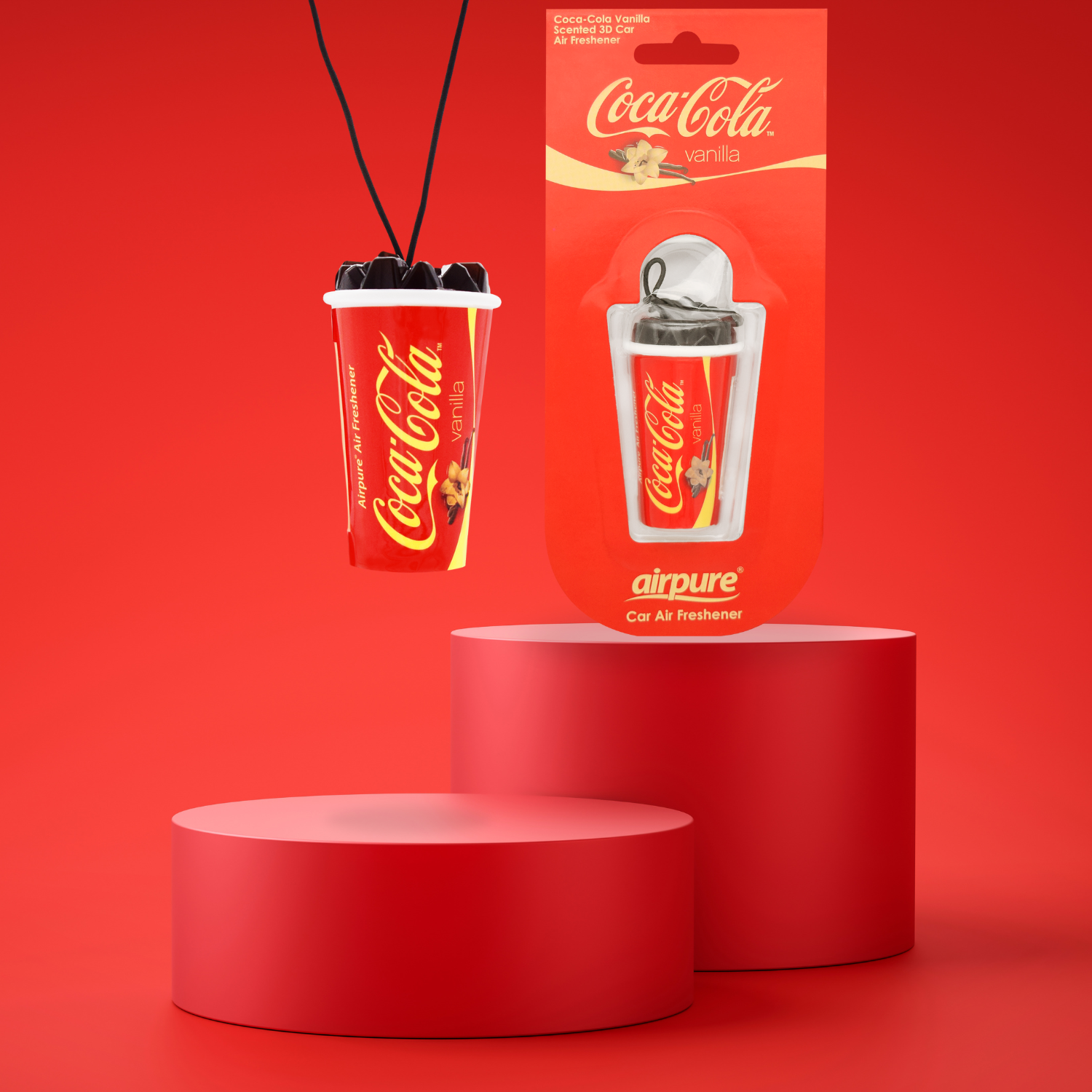 Der sorgfältig gestaltete Lufterfrischer im 3D-Becher-Design ist nicht nur ein echter Blickfang. Einfach am Rückspiegel befestigen und das Dufterlebnis von Coca-Cola Vanilla in deinem Fahrzeug genießen. Die konstante Duftabgabe sorgt dafür, dass du bei jeder Fahrt von diesem besonderen Aroma begleitet wirst.
